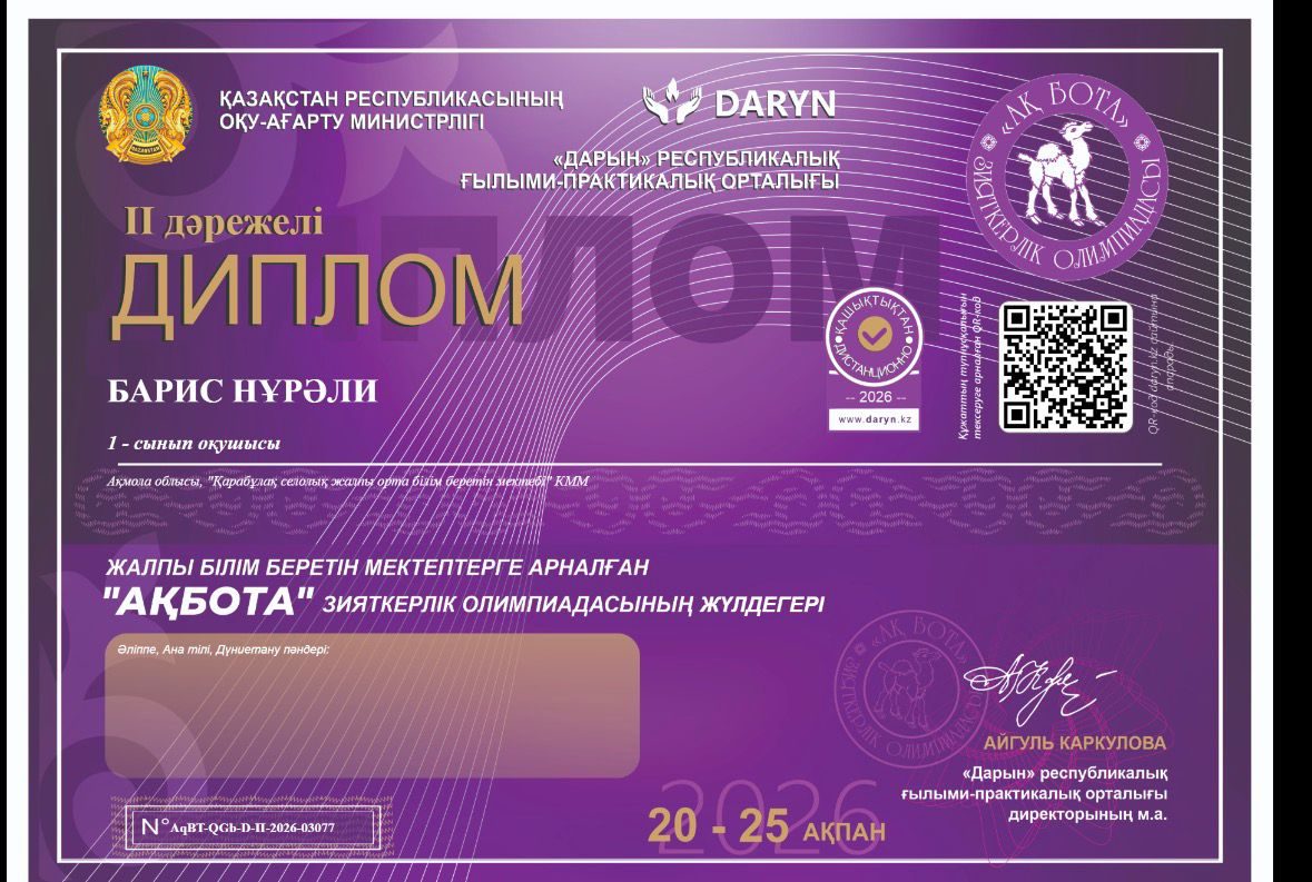 Коммунальное государственное учреждение "Общеобразовательная школа села Карабулак отдела образования по городу Степногорск управления образования Акмолинской области"